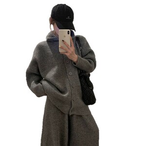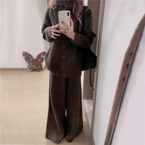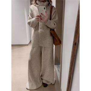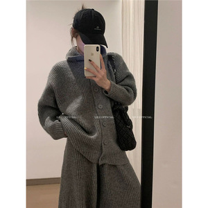 孕妇高级感套装宽松时髦针织毛衣长袖外套阔腿裤秋冬新款两件套潮