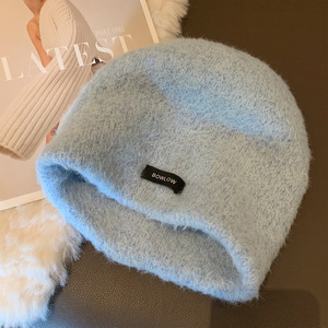 韩系毛绒针织毛线帽女2025新款秋冬保暖显脸小大头围防寒包头帽子