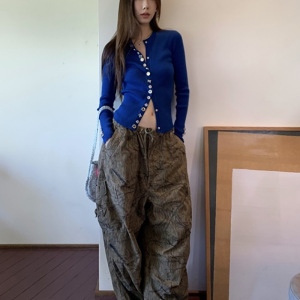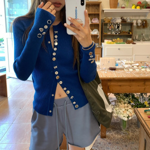 名伶千金 经典款重工钻扣长袖羊毛针织开衫