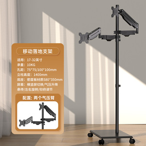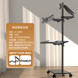 双屏气压臂+键盘托 落地式可移动 17-32英寸