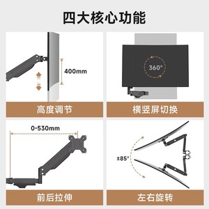 显示器落地式支架可移动升降工作台带键盘托屏幕旋转伸缩悬臂挂架