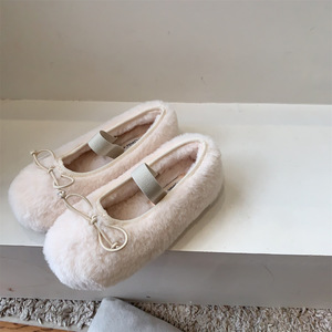 韩版蝴蝶结冬季童鞋小童儿童毛毛鞋女童棉鞋浅口女孩公主鞋子外穿