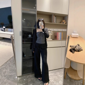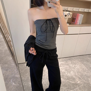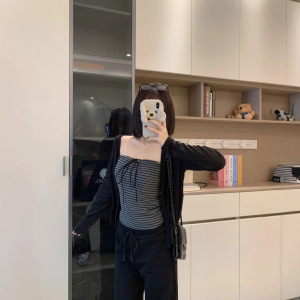 大码早秋甜辣妹复古绑带设计防晒短款小开衫+条纹抹胸套装
