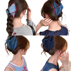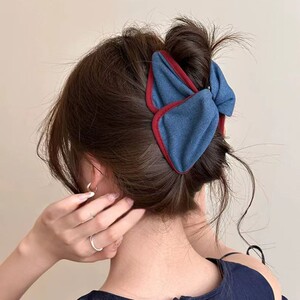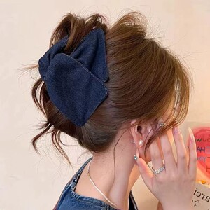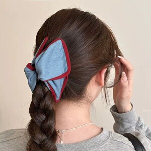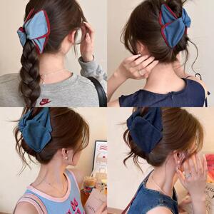 心跳红蓝~复古甜美牛仔发夹女2025新款高端后脑勺抓夹大号鲨鱼夹