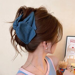 撞色浅牛仔抓夹