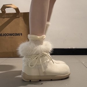 女王范白色厚底加绒加厚雪地靴女款2025新款冬季保暖毛毛棉鞋子