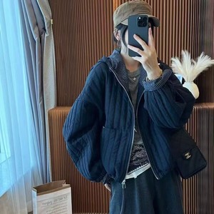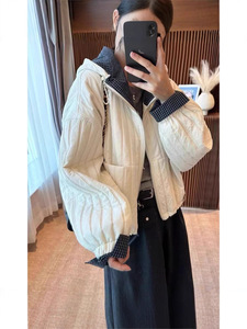 欧货撞色薄款连帽棉衣短外套女2025秋季新款宽松休闲棉服夹克上衣