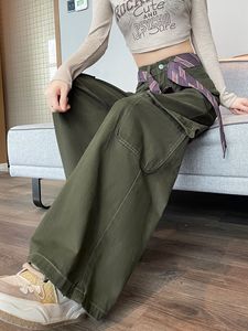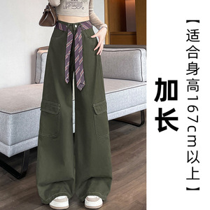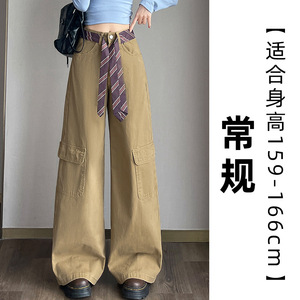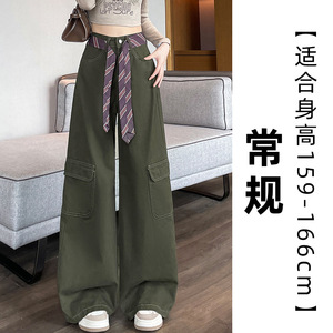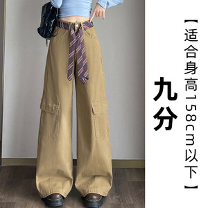 军绿色工装裤女休闲牛仔裤大口袋设计感2025秋季新款小个子直筒裤