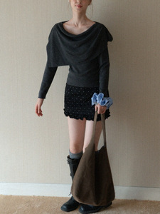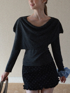 EGGK 可拆卸荡领披肩U领修身长袖针织衫秋季法式气质显瘦休闲衣