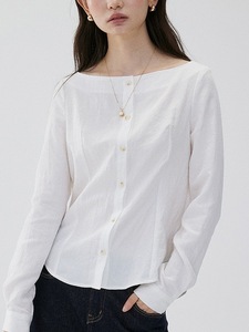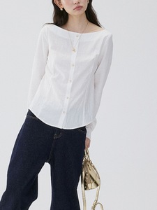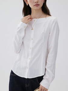 【芥末】法式一字领宽松通勤百搭衬衫女25秋季简约休闲上衣
