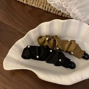 2025韩国新款大小号发量少香蕉夹竖夹珍珠布艺马尾夹竖卡夹子头饰