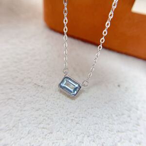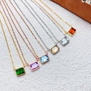 S925纯银镶嵌天然海蓝宝石榴石透辉石多款宝石吊坠包镶简约锁骨链