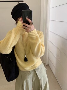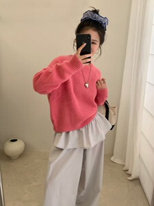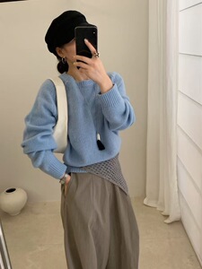100%全羊毛圆领纯色毛衣女套头宽松百搭洋气高级感打底针织衫上衣