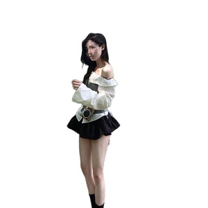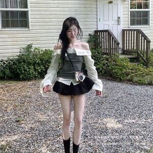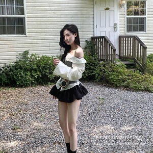 一套(一字肩上衣+黑色短裙)