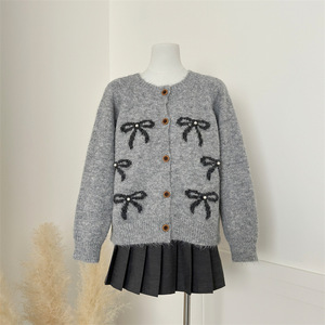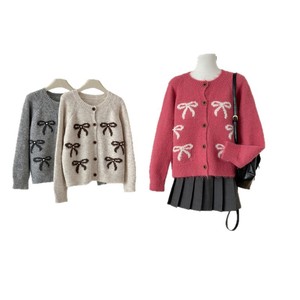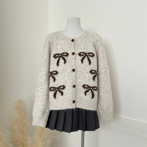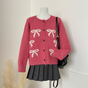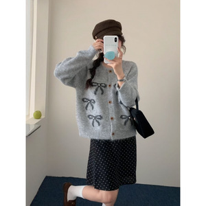 2025秋冬新款蝴蝶结设计感针织开衫圆领慵懒风宽松毛衣外套女装潮