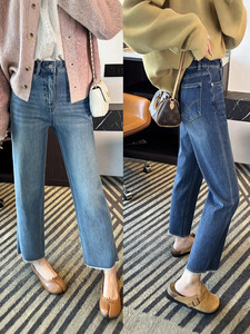 无法拒绝的神裤 四面弹九分直筒牛仔裤女秋新毛边高腰显瘦法棍裤