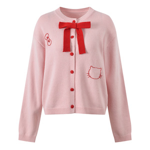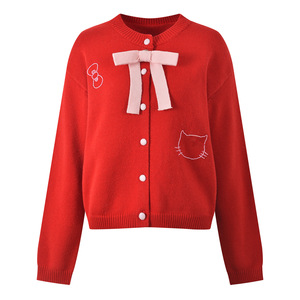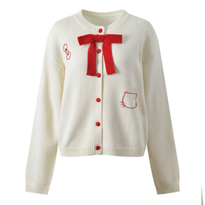 2025秋季新款温柔风立体蝴蝶结圆领甜美减龄长袖针织开衫上衣