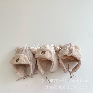 INS风婴童冬季保暖帽幼儿小熊灯芯绒羊羔毛雷锋帽