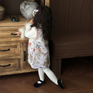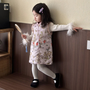 中秋女童汉服连衣裙秋冬儿童国风立领盘扣改良旗袍裙女宝宝背心裙