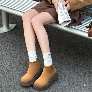 新款真皮短筒2025年秋季百搭松糕厚底勃肯鞋中筒靴休闲马丁靴