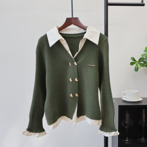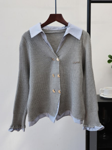 2025秋冬新款拼接假两件针织开衫韩版宽松显瘦设计感毛衣外套女潮