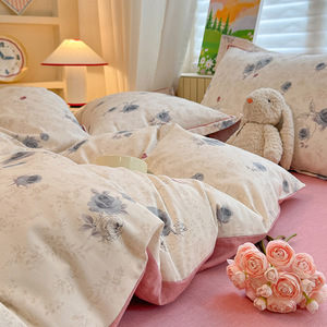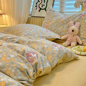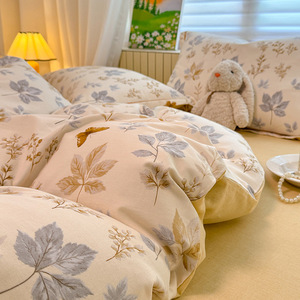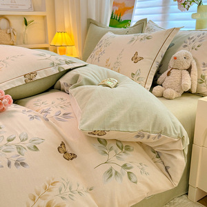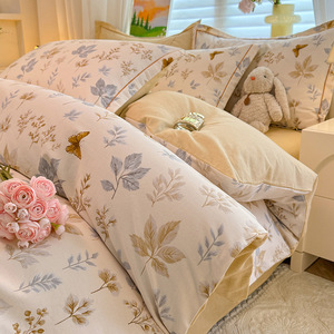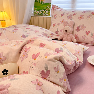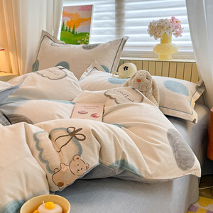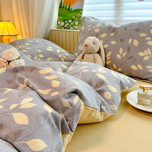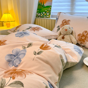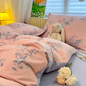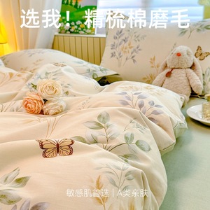 A 类全棉磨毛加厚亲肤四件套秋冬保暖被套3件套100纯棉软糯床笠单