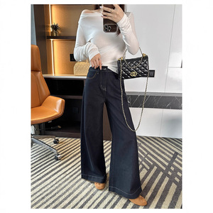巨显大长腿!~深色花边大阔腿牛仔裤女秋季新款松弛感宽松拖地裤