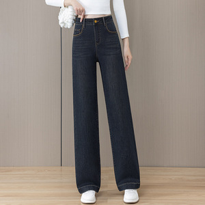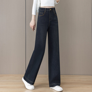 直筒牛仔裤女秋冬2025年新款高腰宽松大码小个子窄版垂感阔腿裤子