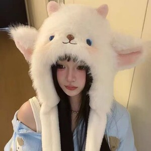 可爱卡通耳朵会动小羊加厚保暖毛绒帽子女冬季防寒护耳网红雷锋帽