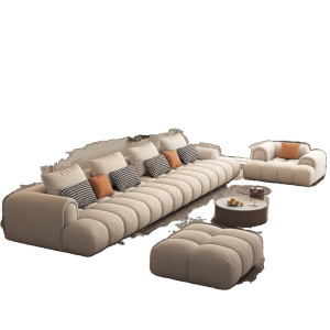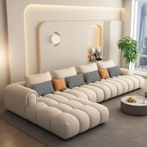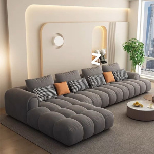 奶油风泡芙沙发客厅大坐深简约小户型直排转角猫抓布云朵厂家