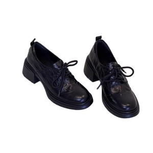 羊皮款~厚底小皮鞋女英伦风系带鞋黑色高跟鞋粗跟乐福鞋鞋马丁鞋