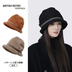 秋冬新款日系复古百搭堆堆帽加厚灯芯绒保暖护耳渔夫帽韩版包头帽