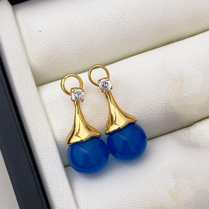 小众设计高级感精致虎眼石香槟色蓝色珠子耳水滴耳夹轻奢气质耳钉