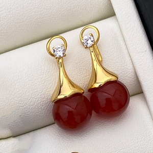 红色珠子耳钉/对