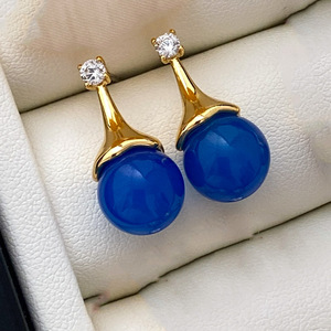 蓝色珠子耳钉/对