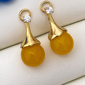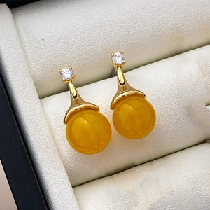 橘黄色珠子耳钉/对