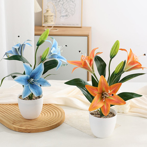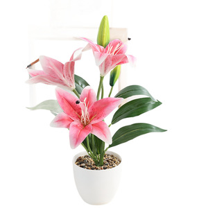 外贸3D大头百合花三头仿真百合家居落地假花装饰婚礼花艺盆栽摆件