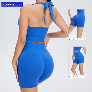 夏季新款跨境欧美瑜伽裤女运动高腰提臀紧身健身裤纯色运动三分裤