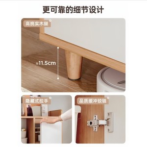 【圆润把手★高密加厚板】 90*30*82CM田园橡木色+暖白色三门一格