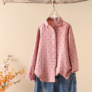 日系森女印花典典 木耳花边 女士开衫长袖衬衫双层纱肌肤棉上衣