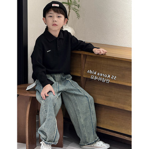 男童韩版洋气Polo衫卫衣2025春秋中大童休闲宽松百搭长袖T恤上衣