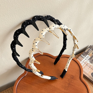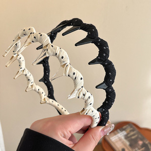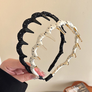 法式黑白波点布艺缠绕长齿发箍日常百搭新款气质一体头箍发卡发饰