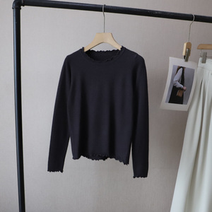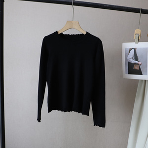 [比正]2025秋冬新韩版简约木耳边圆领针织衫女百搭显瘦打底衫5101