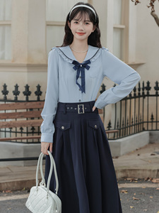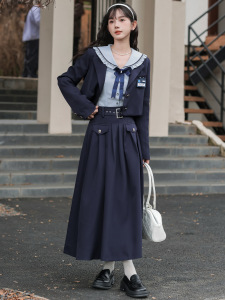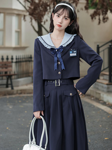 日系学院风海军领衬衫百褶半身裙西装外套三件套女jk制服套装裙