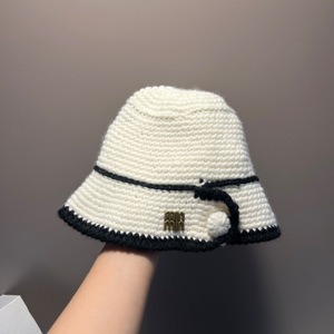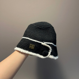 韩版混色手工钩针粗毛线针织帽女秋冬季保暖护耳渔夫帽大头围帽子