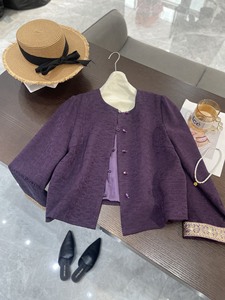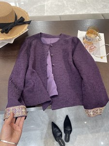 油丝提花复古韵味紫色优雅大气中国风圆领盘扣宽松秋季唐装外套