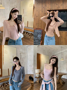 2025年秋季复古设计感条纹吊带背心女长袖针织开衫外套两件套装