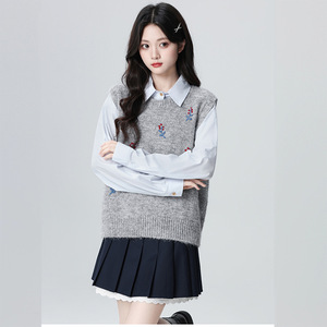 灰色坎肩针织叠穿马甲背心女春秋秋冬韩系毛衣时尚刺绣可爱