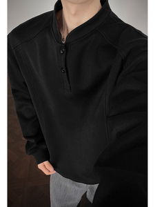 360G重磅华棉亨利领卫衣男款春秋美式休闲内搭打底衫潮流正肩上衣