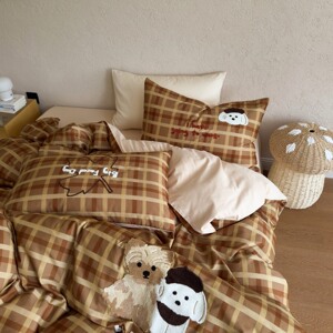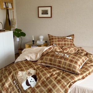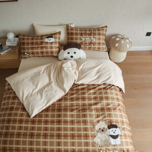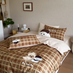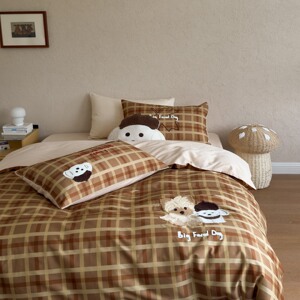 可爱卡通全棉磨毛四件套加厚保暖秋冬英伦风儿童被套床单床品纯棉